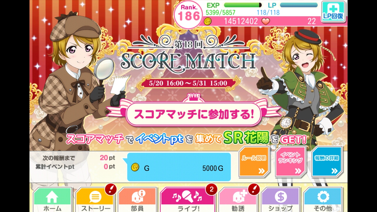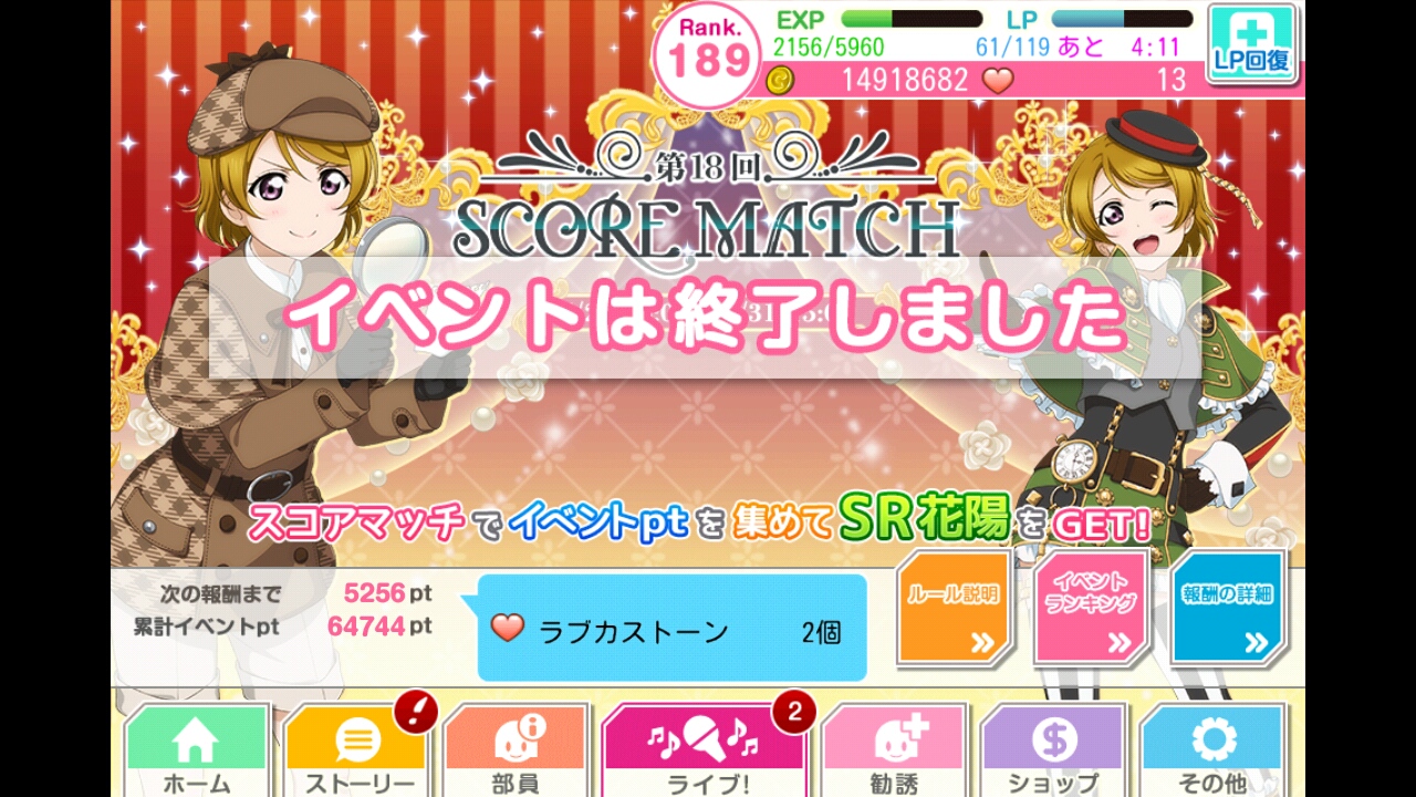 さて、スクフェスのイベントは推しキャラである花陽ちゃんが5/20から始まったわけです。