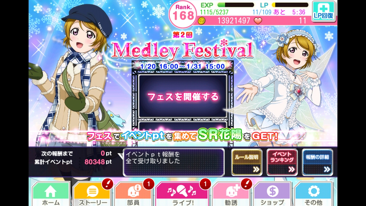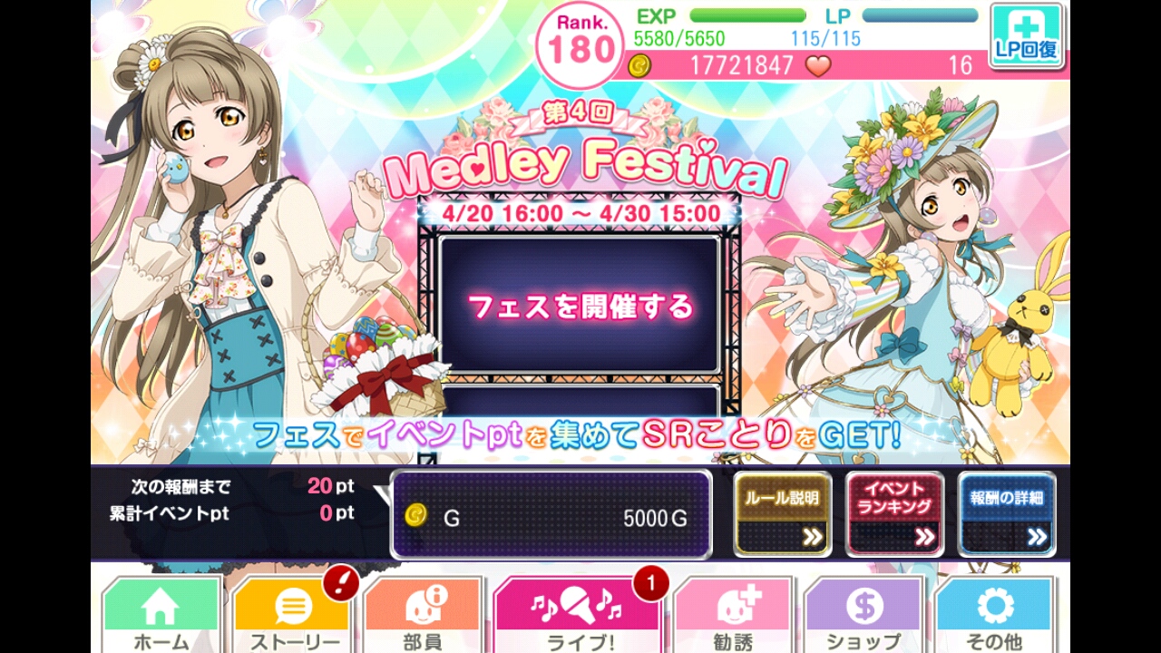 ちなみに、只今行われてるイベントはことりのメドフェスですね〜