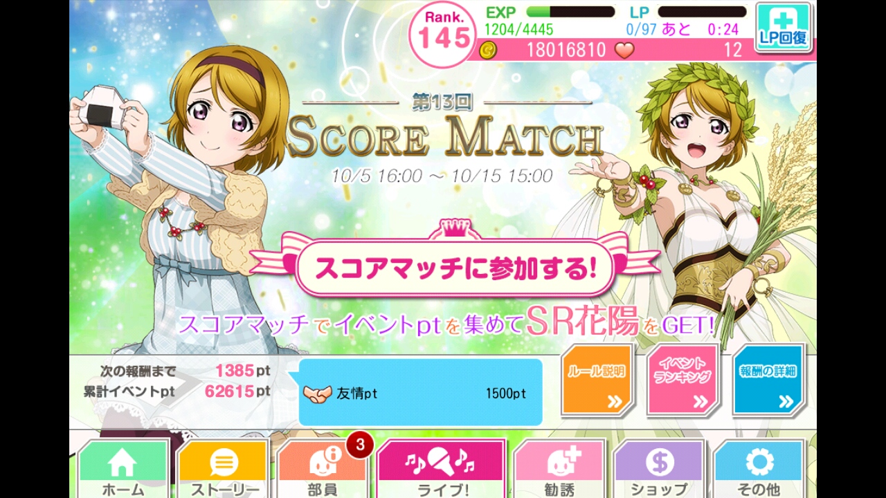 花陽イベ終わりからまとめてるこの記事で花陽イベ再びきました。