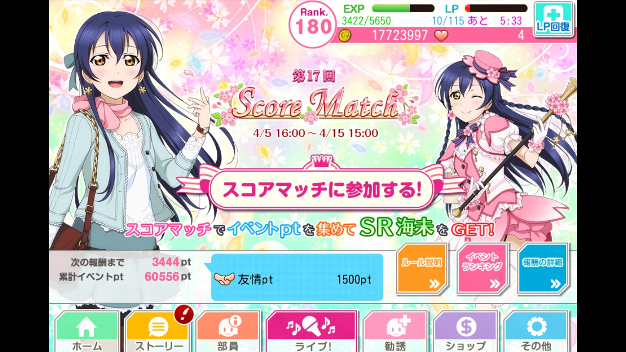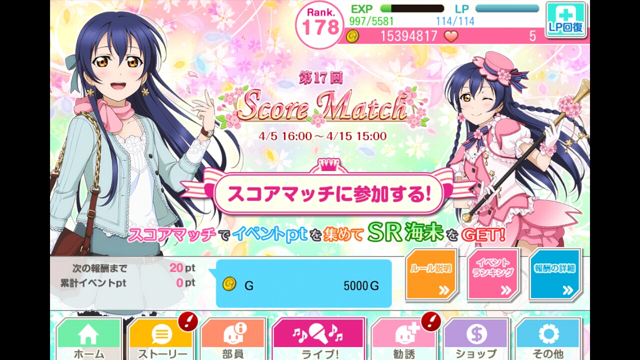 海未ちゃんイベもトラウマあって前回やらなかったんだけど、そのイベボーダー低かったらしくて、やっとけばよかったよ!